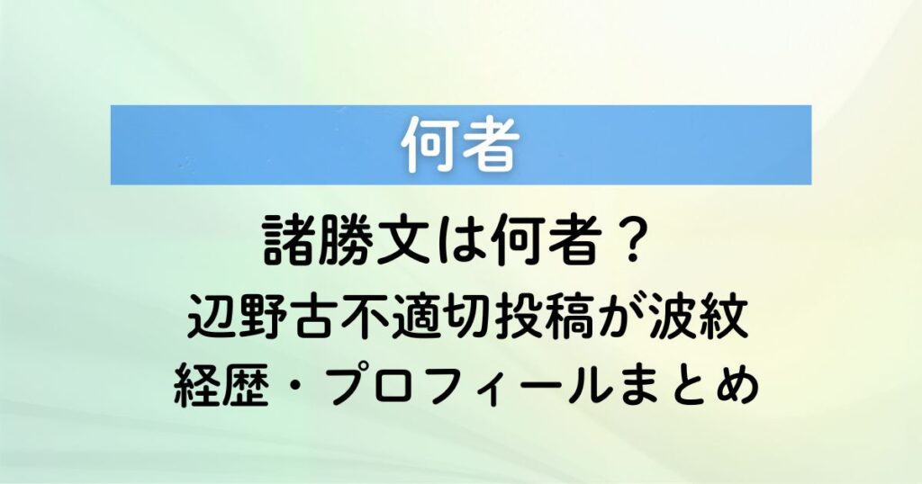 諸勝文さんの名前が急に広がっていて、「この人は誰なんだろう」と気になった人もいるはずです。 きっかけになったのは、辺野古をめぐる投稿への引用リプライでした。 内容がかなり強く、しかも受け止め方によっては亡くなった女子生徒や遺族への配慮を欠... -