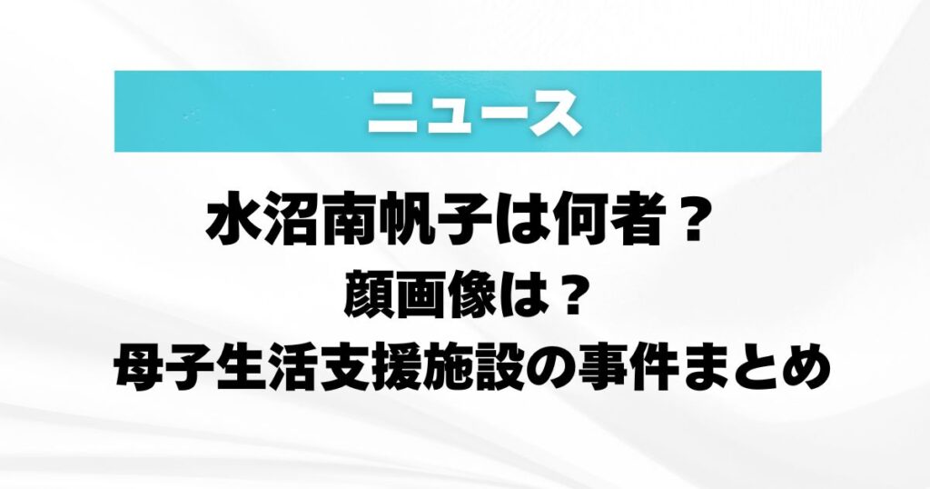 水沼南帆子容疑者の名前が出てきて、どんな人物なのか気になった人もいるかもしれません。 顔画像は出ているのか。 母子生活支援施設で何があったのかを見ていきます。 【水沼南帆子は何者?】 まず前半で分かっていることを押さえておきます。 水沼南帆子... -