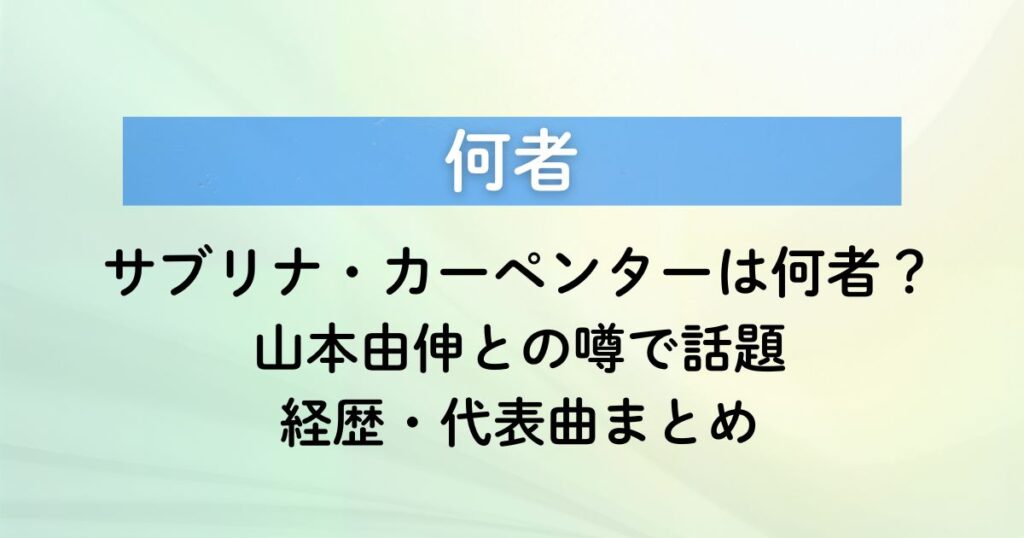 サブリナ・カーペンターさんと山本由伸選手の噂が出ていて、気になっている人もいるのではないでしょうか。 海外アーティストということもあり、「そもそも誰なの?」と感じた人もいるかもしれません。 ここでは、サブリナ・カーペンターさんが何者なのか... -